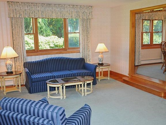 This substantial family home was built as a special place for a family to grow up. It is in a convenient commuter location on a quiet side street. The first floor has a kitchen, living room, dining room, 4-season sun parlor, family room, 1/2 bath, and laundry. The second floor has 2 master suites. and 2 smaller bedrooms. The first master bedroom has a 4-piece en-suite bath, sitting area (referred to as a sitting room), walk in closet, second closet, and attic access. The second gracious MBR has a dressing room, custom built-in storage, and 3 closets. The 2nd 4-piece BA is shared with the 2nd MBR and the final 2 bedrooms. The home has a breezeway, an attached 2-car garage, detached barn/2-car garage, and storage shed. The generous open, sunny back yard is partially fenced. The house sits back on the lot so there is a large front yard and exterior parking for 6 cars. The covered front porch is large enough to be a pleasant shaded place to sit on a sunny day. Priced to sell.