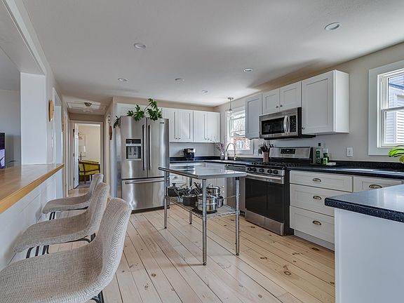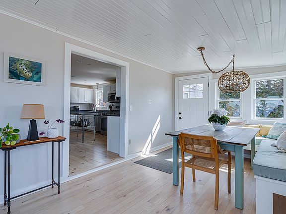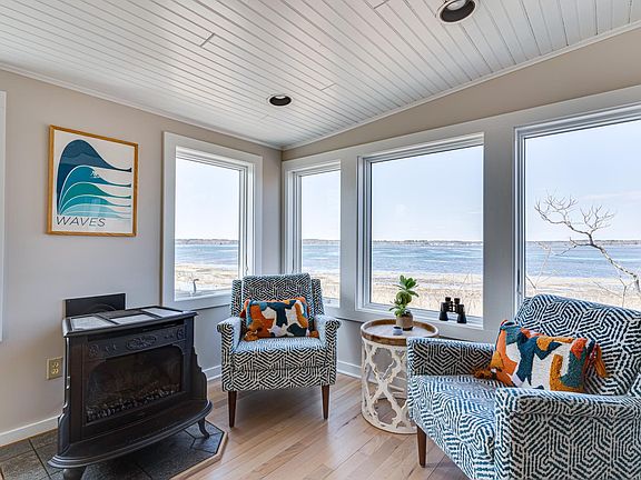 The essence of this hidden gem can truly not be captured by words or pictures. This freshly updated home boasts water views from virtually every window. The main entrance welcomes you to a bright waterside sitting space complete with a gas fireplace to keep you toasty and a perfectly situated dining area. The open concept kitchen has stainless steel appliances, gas cooking range, soft-close cabinets/ drawers and a window facing breakfast bar. The living room overlooks a stylish outdoor deck perfect for inclusive entertaining. This level also includes two bedrooms with ample closet space as well as a stunning bathroom with a walk-in tiled rain shower. The lower level consists of two bonus rooms, one with a walk-in closet, the other perfect for guests or a home gym, a beach inspired tiled bathroom, barn door enclosed laundry area, and a cozy den with a 100-inch movie screen. There are also two entrances, one leading to the carport and the other to the backyard. The outdoor stone patio area feels like a private oasis with a thoughtfully cultivated garden, and easy to maintain landscaping. If you love beach life, boating, paddle boarding & kayaking this is the location for you with a short walk to Hampton Beach and 150 steps to a neighborhood beach. Timing is everything and the time is yours. Welcome home! This home is not in a flood zone.