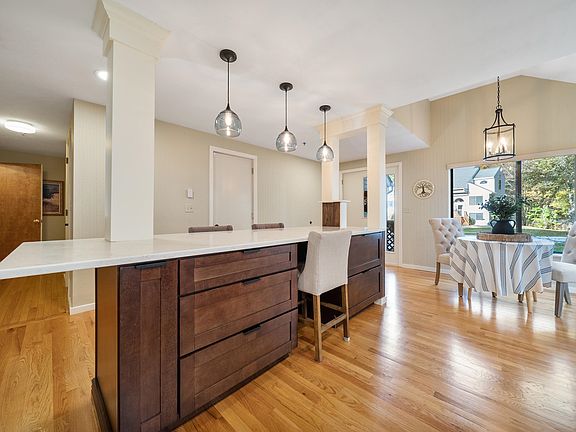 On-site amenities and a showstopper kitchen - Discover life at Bryant Woods! This sought-after, non-age-restricted, and pet-friendly community offers a peaceful country setting with the perfect blend of convenience—located just over the MA border and minutes to Routes 495, 111, 95 & 93 as well as restaurants and shopping. Enjoy walking trails, tennis courts, a pool, RV Parking, gardens and a clubhouse. This 2 BD, 2.5 BA home features a showstopping kitchen remodel with a 3’ x 9’ quartz island, Bosch stainless steel appliances, soft-close and new island cabinetry, quartz countertops, a Blanco sink, recessed and pendant lighting, and newer hardwood flooring. The open-concept living and dining areas with hardwood floors and a gas fireplace create a warm and inviting space for entertaining or everyday living. Upstairs, the spacious primary suite includes a large walk-in closet and ensuite bath, while the second bedroom offers a separate ¾ bath. The finished lower level with daylight windows and a walk-out slider provides flexible space for a home office, gym, or media room. Recent updates include a newer AC condenser, hot water heater, roof, PEX plumbing, and electrical panel. Comfort, convenience, and community—and a cul-de-sac location with just 12 homes! Make 5 Balsam Court your next address! OPEN HOUSES - Sat & Sun, Oct 18 & 19th (10-12).