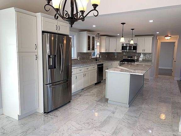Completely renovated and open concept floor plan cape house in highly sought-after Danvers neighborhood. Features large and luxurious kitchen with marble floor, marble backsplash, extended granite counter tops, extended granite island to seat five and new appliances including wine fridge built into cabinets. Kitchen adjacent to dining room with cathedral ceilings, marble floor and sliding glass doors leading to new patio area and large back yard. Kitchen also adjacent to bright and sunny living room with modern gray hardwood oak floors and original functional fireplace. Oversized master bedroom on first floor with large closet and modern gray hardwood oak floors. Luxury bathroom on first floor with large marble shower, marble vanity and new fixtures. Second floor features two large bedrooms and full bathroom with new fixtures and marble walled bathtub for children or even pets. Basement features private office space, finished living room and enormous luxury bathroom with large marble shower, marble vanity and new fixtures. Basement over six hundred square feet and not included in square footage of property. New heating and cooling system, plumbing, electric, and HVAC. Conveniently located within a half mile of downtown Danvers, Route 1, Route 128, Route 95 and only walking distance to Danvers Middle School.