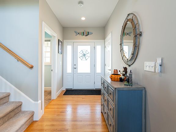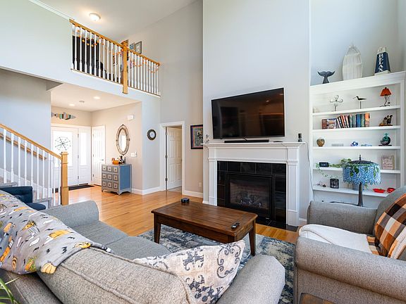 This stunning 3-bedroom, 2.5-bath home is tucked away at the end of a quiet cul-de-sac, offering both privacy and a convenient commuter location. Inside, you’ll find soaring 9’ ceilings and a vaulted-ceiling living room centered around a cozy gas fireplace. The spacious kitchen is a true showstopper with a center island, walk-in pantry, and beverage center—perfect for entertaining. The first-floor primary suite includes a walk-in closet and a large bath with a step-in shower. A dedicated first floor laundry room adds everyday convenience. Upstairs, two additional bedrooms share a Jack and Jill full bath, while a large loft area provides flexible space for a home office or den. Outdoor living shines with a large Trex deck and hot tub, ideal for relaxing or hosting guests in the fenced in yard. With its thoughtful layout and desirable features, this home is designed to elevate everyday living.
