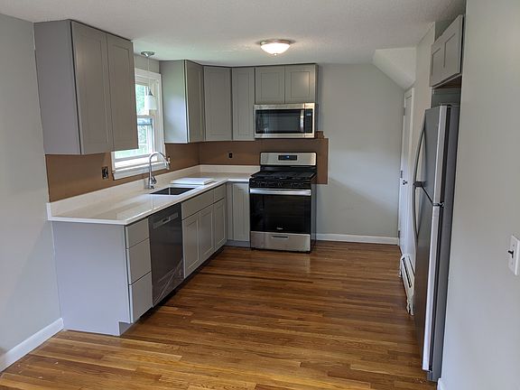 Brand New Everything! Finishing touches being applied now! Completely updated 3 bed/1 bath apartment in a two family in a great neighborhood; private driveway, large backyard, new appliances (including dishwasher and microwave) hardwood throughout. Easily accessible from 128 and under 30 minutes to Boston. 5 minutes to Woburn Village; shopping and dinning and 1 mile to Stop and Shop. Family neighborhood, walking distance to the elementary school. Laundry in unit Available for Sept 1st. First month, last month and security deposit due at lease signing. Renter is responsible for all utilities, including water. Landlord is responsible for yard work but renter is responsible for snow removal in their own driveway No smoking Well behaved cats or dogs are allowed for an additional fee. Specific breeds and breed mixes will not be allowed