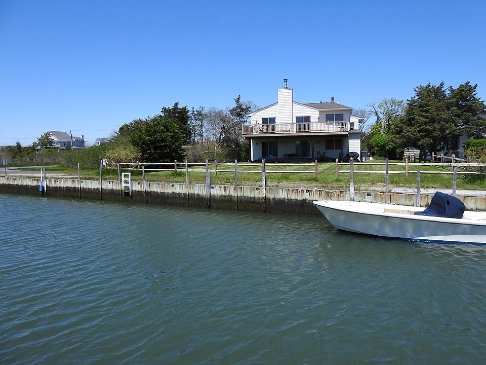 With views of Moriches Bay and on a canal. This new Contemporary home features a living room with fireplace, kitchen with stainless appliances and granite counters, master bedroom suite with its' own luxurious master bathroom and decking plus three additional bedrooms, 2 full bathroom plus 2 half baths. Central air conditioning, ceiling fans, rear deck, barbeque. Available August-Labor and year round after Labor Day.