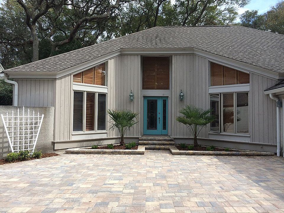 You will enjoy being only a short walk from the beach in this ideally located 3 bedroom/3 bath home. As you enter the home, the diagonally tiled foyer opens into the inviting living and dining areas. Featuring hardwood floors, the living area offers natural lighting from skylights in a vaulted ceiling, deck access and a spiral staircase up to the loft. The loft is an open area that could be used as office space or as a gaming area. The dining area has a beautiful wet bar with a sparkling granite counter and backsplash, a wine chiller, plantation shutters, hardwood floors and deck access. Chefs will delight in this bright kitchen which presents tile floors, new cabinets, granite counter tops, a Jenn-Air range, plantation shutters, skylights, and a cozy breakfast nook. The master bedroom includes a vaulted ceiling, his and her closets with built in shelving, one of which is a walk-in, private bath with his/her vanities, large walk-in shower and a skylight. The first guest bedroom has plantation shutters and a private bath. The second guest bedroom has a private bath with tile floors and deck access. The spacious hallway leads around to the laundry and 2-car garage. Located near shopping, dining, and the ocean this home is sensibly designed and ready and waiting to be your island getaway home.