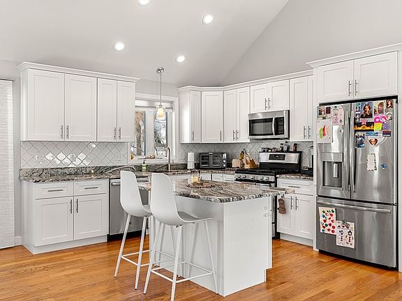 Step into this stunning home featuring an open-concept design perfect for modern living. The custom kitchen boasts white shaker cabinets, granite countertops, a center island breakfast bar and stainless steel appliances. A vaulted-ceiling living room flows seamlessly into the dining area, where sliders open to a 12x12 deck. Natural wood flooring adds warmth throughout. The primary suite offers a walk-in closet and private bath with a custom tile shower. Two additional bedrooms and a full bath complete the main level. A hardwood staircase leads to the expansive finished lower level, featuring a 16x25 bonus room with a gas fireplace, abundant sunlight, a ¾ bath, laundry room, and direct access to the two-car garage and backyard. Ideal for a guest suite, home office or playroom. Conveniently located near Routes 93 & 495, shopping, dining and The Loop, this home offers both style and convenience. Don’t miss this incredible opportunity!