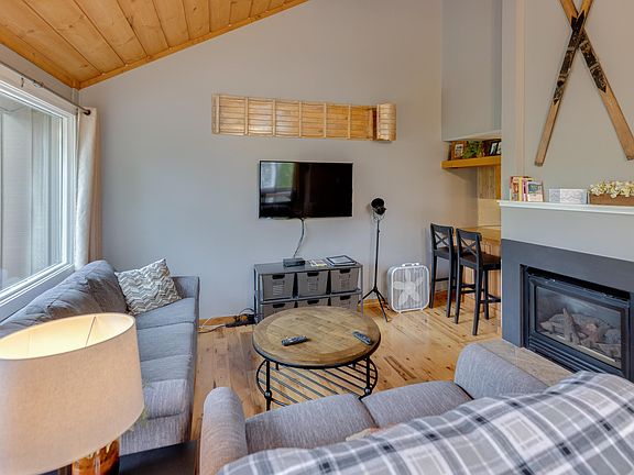 GREAT VIEWS OF LOON MOUNTAIN, SOUTHERN EXPOSURE!! How wonderful to have the sun shining through your windows of this bright end unit offering a nice view of the slopes at Loon Mountain. The open concept kitchen, living and dining area has a new gas fireplace and vaulted ceilings with plenty of glass that brings the outdoors inside. The master bedroom has a private bath and on the upper level 1 more bedroom and bathroom. Being directly across the street from Loon Mountain and offering access to all the recreation amenities offered by The Village makes this one worthy of your consideration. Right now, this is Loon Mountain's best value with a very popular floor plan and some nice upgrades throughout make this an easy choice. Offered fully furnished and equipped, ready for your personal flair.