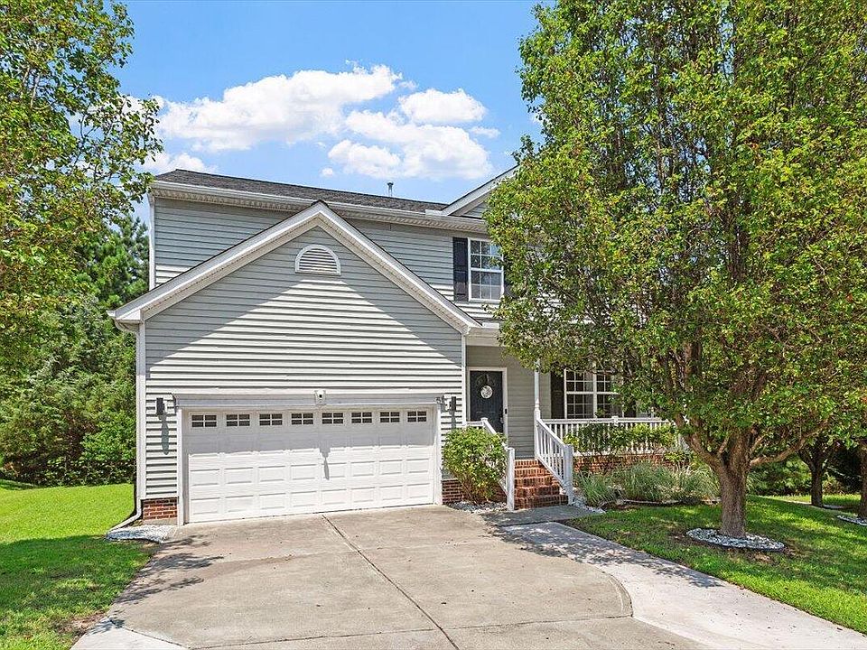 Tucked away on a quiet cul-de-sac in the Cardinal Lake community, this beautifully refreshed home offers comfort, space, and convenience. The open main level features vaulted ceilings and a welcoming great room with a natural gas fireplace, perfect for both everyday living and entertaining. The kitchen includes new backsplash, cabinets, granite countertops, and stainless steel appliances. It flows seamlessly between both the the breakfast room and formal dining room. Upstairs, you'll find four generous bedrooms and two full baths, including a spacious primary suite. A main-level half bath, fresh paint, and thoughtful updates throughout ensure a move-in-ready experience. Enjoy peaceful mornings on the front porch or entertain on the large back deck overlooking the private yard. With a 2-car garage and driveway parking, there's plenty of space for guests and storage. Located just minutes from downtown Durham, Duke University, shopping, dining, and major highways this home offers the perfect blend of tranquility and access to everything you need.