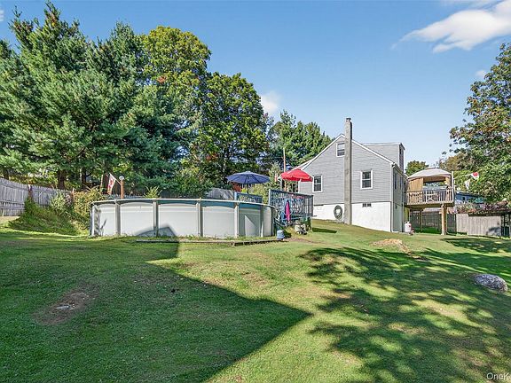 Lake Rights! Low Taxes! Welcome home to this lovely cape, beautifully situated on a double lot allowing for plenty of yard space for peace and privacy. This home features 4 bedrooms and 2 full bathrooms with a large eat-in kitchen, wood floors and a spacious unfinished, walk-out basement. Walk-out from the kitchen onto a lovely deck for grilling, dining and relaxing as you take in the tree-top views. This is a well cared-for house offered for sale by it's residents of the neighborhood for decades and the owners of this home for almost 20 years. There are lake rights to crystal clear Walton Lake, once a reservoir, and the lake access is walkable. Enjoy an above ground pool, new pressure tank and a new water softener. Sale includes a Pulsar 7500w Generator, canopy, 2 snowblowers, John deer driving sit lawnmower and 1 push lawn mower. Above Ground pool sits on Adjacent lot which is included and would need approvals to build. Pool comes with pump, 2 solar covers, 1 winter cover pump and the ladder Close to major shopping and restaurants. Approx. 1 hr to NYC. Commuter train and buses nearby.