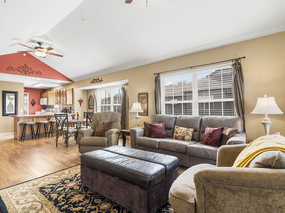 Bermuda breeze! This fully furnished condo at Stonebridge Village offers an open layout with vaulted ceilings and an abundance of natural light. The modern kitchen features a cozy beverage station, bar dining, and a dedicated dining area, ideal for entertaining guests or quiet meals at home. The inviting main living area is designed for comfort, with access to a covered deck ready for relaxation or hosting friends. The primary suite offers a private sanctuary with deck access, making it the perfect place to unwind. This condo is not only turnkey, furnished, and ready for immediate occupancy, but it's also approved for short-term rentals, making it an excellent investment opportunity, too! Experience peace and relaxation in this top-floor penthouse with premier access to Stonebridge's resort-style amenities, including a golf course, swimming pools, fitness center, clubhouse, restaurant, and more. This condo is a great vacation getaway, rental income property, or a comfortable year-round home just minutes from Silver Dollar City and Table Rock Lake. Your future starts here! Take a tour in person or explore the video tour today.