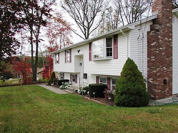 Welcome home! If you have been waiting for a well-maintained, move-in ready home that is in a desirable neighborhood, WAIT NO LONGER! This ideal split ranch boasts a brand new roof and gutters, heated 4-season sun room, wraparound deck, large backyard, ample storage, and so much more! The upper level offers a bright kitchen that flows through the dining room and opens into the living room with bay window. Refinished hardwood floors span throughout each of the 3-4 bedrooms. The finished downstairs features a half bath, wall to wall carpeting, fireplace and family room which could easily be converted into guest room or in-law suite with side entry and garage access. Two additional rooms allow for extra storage or to be used however you see fit: office, exercise room. Newer boiler. Ideal commuter location - access to 146 and Mass Pike. Come visit the Open House, Sunday 10/29 from 12-2pm.