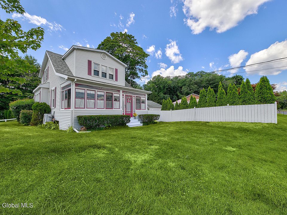 Fabulous Find! Enjoy the many features and surprises that this home has to offer! You will Appreciate all the Charm and Character throughout. Spacious front porch, hardwood flooring, stained glass windows and crown molding. Enjoy 3 bedrooms and 2 Full Bathrooms with a finished basement. Features include a gas fireplace in living room, first floor bedroom, office, and kitchen with recess lighting. The best surprises are yet to come. A Gorgeous outdoor Entertaining Space to gather with friends or family! Enjoy the Firepit and Above Ground Salt Water Pool. A ONE OF A KIND GARAGE- Heated and offers a workshop and additional storage above. Can fit 5 Vehicles and comes with a Commercial Grade Air Compressor. This home is situated on half Acre lot in a prime location in Guilderland. A MUST SEE!