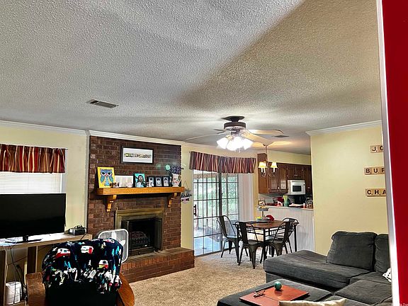 This tri-level home would make ANYONE want to just come in a visit a while!! This is family friendly from front yard to the back! Large screened in back patio, From the foyer area you can see a living area and formal dining along with a den with a fireplace that is equiped with electric logs, three bedroom upstairs and one very large bedroom and full bath on the bottom level. There is also a SAFEROOM in the bottom bedroom. The master bedroom has had an addition added on to it and is really two rooms for a private office or just a sitting room. All bedrooms are really nice size, two full baths upstairs. Kitchen has new microwave, electric stove and oven. There is a wall oven that is gas BUT the gas line going to the fireplace and the oven has a leak underneath the concrete patio and has been capped off. Metal roof installed 2018 two HVAC units one that services the 2nd & third level is older the bottom level and the master bedroom is on another newer unit replaced 2021 New dishwasher 2022 water heater new 2016. This home is asking for a new family to love it as much as the one leaving did. Call agent for showings.