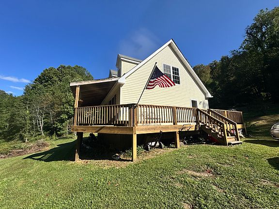 Convenient location, near Banner Elk- features two Bedrooms, two and a half baths, den/ office on 2.47 AC. Hear the sound of the creek! Great garden area, large living room with dining area, eat in kitchen, main level Primary suite with soaking tub, stand up shower and dual vanity. Second level has - a bedroom, large full bathroom, and a den/ office area upstairs. Spacious closets, lots of storage, large covered porch. Walnut floors on the main level. Needs some TLC- property fronts on Curtis Creek Road. $289,900.