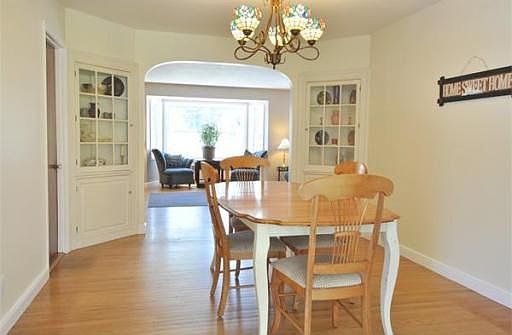 Expanded 3+ Bedroom home with one-car garage under. Original Hardwood Oak flooring through most of the house Many recent updates and original built-ins. Large Kitchen with breakfast nook area, spacious dining room with built-ins, Fireplaced living room with bump-out bay window. 3rd floor walk-up attic provides tons of accessible storage. Partially-finished lower level with masonry fireplace, half bath, laundry area and large recreation room with wet bar, space for exercise and workshop. Play ...