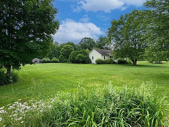 Set back from the road on just under 5 acres of land. Blink, and you miss this single-story home built in 2006 with all the bells and whistles of a well-thought-out home in a parklike setting with a peaceful view out every window and without another house in sight. The perfect floor plan for today's lifestyle and enjoyment with an inviting open living area that includes the living room open to the kitchen and dining area and French doors opening onto the sunroom, all glass, tile floor, and a tranquil view of the grounds. The main bedroom is very spacious, with two double closets and an attached bathroom. The second bath and laundry are on the other side, along with the other bedroom. There are Hardwood and tile floors, Radiant floor heat, and central air. Enjoy the outdoors with the front porch, patio off the sunroom, established garden and garden shed, fruit trees, and 'Dry Brook' that runs through the property down below through the woods. Private yet super convenient location.