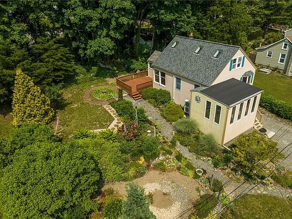 Charming sun filled 3 bed,1 bath Bungalow. Water view. Cozy living/room dining room open to updated granite/stainless kitchen, Sunroom office area plus bedroom, full bath with shower and jetted tub and separate laundry room all on main floor. 2nd floor has 2 additional bedrooms. New in 2022: electric panel 200 amp. and AC /Heating system. Walk out basement with workshop, storage and 1 car garage. Beautiful landscaping and flower gardens encompass the grounds with private deck all nestled on quite dead end street. Short walk to beach, boating, and kayaking on the Kickemuit River upper Mount Hope Bay.
