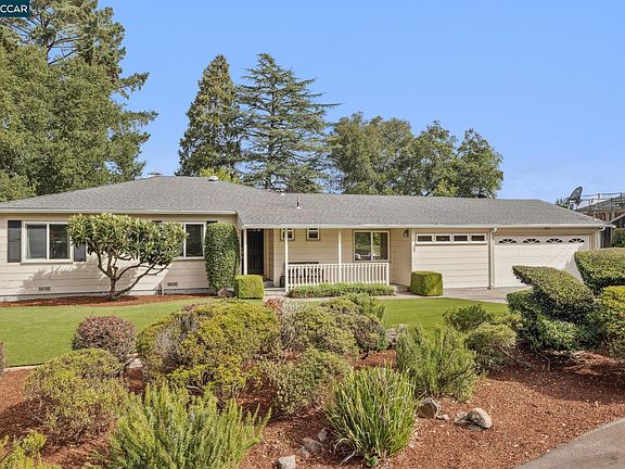 Rare opportunity awaits in one of Glorietta’s most coveted streets. First time in 60 years, this traditional single-level rancher sits on .53AC flat lot w stunning views of Mt. Diablo. Combining classic charm w thoughtful updates, the home offers 1,805± SF of living space, 3 generous bedrooms w ample closets, & 2 beautifully updated bathrooms with timeless finishes. Open-concept living & dining areas are anchored by brick fireplace & custom built-ins, while picture windows & glass sliders invite natural light & seamless access to the backyard. Remodeled kitchen w chic blue cabinetry, crisp white counters, & brass accents flows into spacious family room, where large windows & sliding doors open directly to a lovely patio—an ideal extension of California’s coveted indoor-outdoor lifestyle. Additional highlights include:dedicated laundry room w sauna & garden access. Outdoors w large flat backyard provides endless possibilities: private retreat for entertaining & play, gardener’s haven, or blank canvas for future expansion. Nestled in peaceful private setting & minutes from town, BART, & top-rated schools, walkable to Glorietta Elementary. With iprime location, usable land, & timeless style, home presents immediate comfort & extraordinary potential to create your dream home.