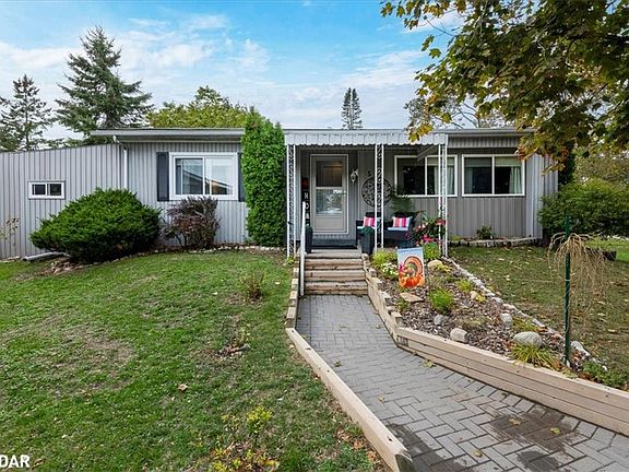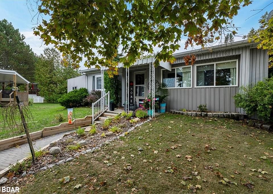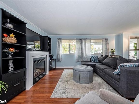 Great location close to everything. Nestled in the vibrant adult community of Sandycove Acres North conveniently located close to the community hall, swimming pool and local plaza. This clean and bright 2 bedroom, 1 bath home features a 916 sq. ft floor plan with vinyl siding exterior, covered front entrance, add-on sunroom side entrance, rear bedroom access to a multi-tiered deck and an attached storage shed. The interior is painted in a light neutral tone, crown moulding, updated maple kitchen, laminate flooring in main living areas with carpet in the bedrooms, newer windows, forced air gas furnace and central air, gas fireplace, panelled interior doors with lever hardware and an updated bathroom. Sandycove Acres is close to Lake Simcoe, Innisfil Beach Park, Alcona, Stroud, Barrie and HWY 400. There are many groups and activities to participate in along with 2 heated outdoor pools, 3 community halls, wood shop, games room, fitness center, and outdoor shuffleboard and pickle ball courts. New assumed lease fees are $777.09/mo. and $144.80 /mo. taxes. Come visit your home to stay and book your showing today.