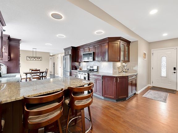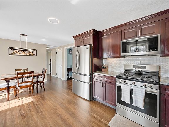 Wow! This beautifully updated five-bedroom, two-bath Starr built home is a rare find in today's market. Newly refinished hardwood floors and a bright, open layout you will love this move in ready home. Gorgeously renovated kitchen with granite countertops, brand-new stainless steel appliances, new lighting, new backsplash, and quality wood cabinets. A cozy living room with large picture window and fireplace, two spacious bedrooms and a remodeled full bath complete the main level. Upstairs are three additional bedrooms including a private staircase leading to the oversized primary suite (currently used as a bike room).The finished basement, with new flooring and a full bath, makes an excellent den, playroom, or teen hangout. Outside, the fully fenced backyard has updated fencing, and a large composite deck. The two-car garage includes a third garage door for full yard access, plus a large shed for extra storage. Renovated and impeccably maintained, pack your bags-this is the one!