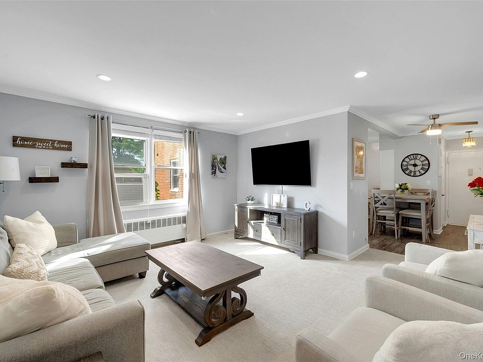 Welcome home to this spacious and stylish 2-bedroom, 1-bath unit in the heart of White Plains! This first-floor residence offers a welcoming entry foyer with a large closet that opens into a sun-filled living room featuring brand-new carpeting. The updated kitchen is outfitted with modern appliances and plenty of counter space, making it the perfect spot for cooking, entertaining, or simply enjoying your morning coffee. Both bedrooms are generously sized, and the full bath showcases a timeless, clean design. Nestled within the sought after Bryant Gardens community, residents enjoy beautifully landscaped grounds set across 22 acres, complete with two playgrounds, a community garden, BBQ/picnic areas, an outdoor fitness zone, and park benches throughout. The community also takes pride in creating a warm, welcoming atmosphere with seasonal touches. Each building offers its own laundry room in the basement, with additional storage units available for a monthly fee. Ample free parking and garage parking (via waitlist) add to the convenience.All of this is just minutes from downtown White Plains, offering endless options for dining, shopping, entertainment, and easy access to Metro-North and major highways. Dont miss this opportunity to own a move-in ready home in one of White Plains most sought-after communities!