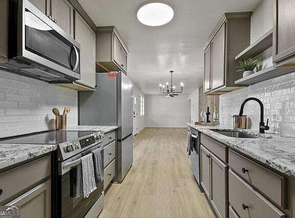 Open floor planUpdated landscapingSleek new kitchen cabinetsStainless-steel appliancesExquisite tile backsplashStunning granite countertopsReimagined kitchen