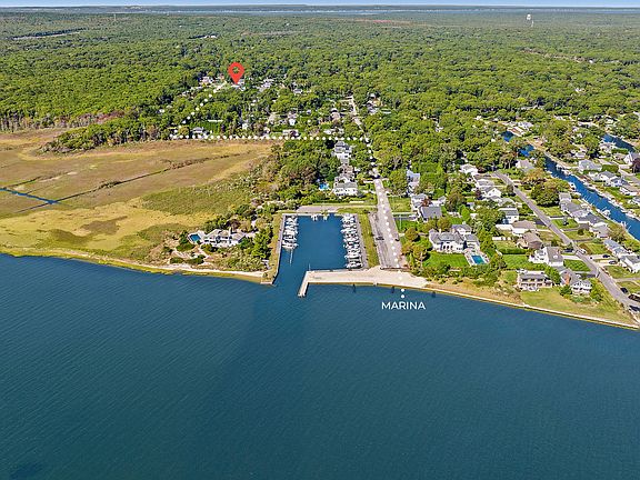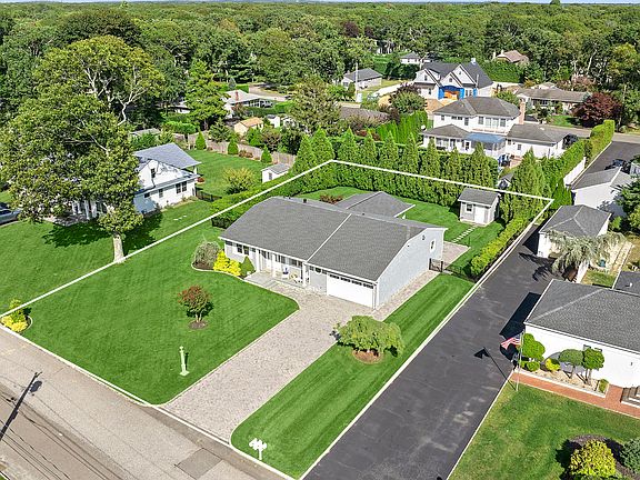 Welcome to 5 Canvasback Lane! Nestled south of the highway, this beautifully renovated gem is tucked away in the private, bayfront community of Pine Neck Landing in East Quogue. Enjoy the serene and tranquil atmosphere of this exceptional neighborhood, with exclusive access to the community's marina and beach, perfect for days on the water or relaxing by the shore. Recently fully renovated in 2020, this stunning ranch exceeds every expectation for your next home. Simple yet spacious, this home is crafted with meticulous attention to detail. From the moment you arrive, you'll be impressed by the striking paver driveway and walkway leading to a welcoming front porch that's perfect for enjoying your morning coffee or tea. Step inside to open-concept living, where the living room's stunning fireplace and the dining area, both enhanced by elegant coffered ceilings, highlight the home's exceptional craftsmanship. At the heart of the home, the thoughtfully designed, oversized and sunlit eat-in kitchen is perfectly equipped for preparing meals with ease, featuring ample counter space, modern appliances, and a layout ideal for both casual family dining and entertaining guests. Just off the kitchen, you'll find a convenient laundry room and direct access to the 2-car garage with interior access to the spotless unfinished basement, a blank canvas to transform the space according to your needs. The master suite features a spacious walk-in closet and master bath with walk-in shower, while an additional bedroom and full bathroom complete the one-level living. Step through the glass sliding doors and discover an expansive covered mahogany deck for dining al fresco connected to a paver patio that sets up the ultimate backdrop for summer soirees, sunset cocktails, or quiet mornings with your coffee. The perfectly manicured lush backyard invites you to lounge, play, or simply soak in the serenity of your surroundings. Mature trees, towering over 20 feet, hug the backyard serving as both privacy and a majestic backdrop. A home this captivating won't linger. Claim your slice of the Hamptons before it's gone!