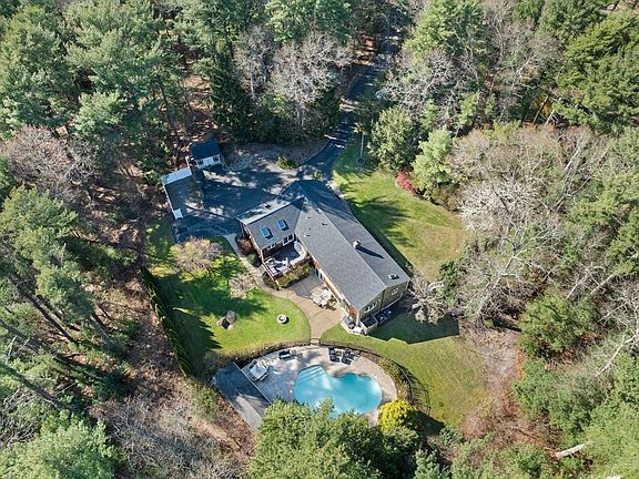 This beautiful residence is nestled in a remarkably secluded setting, yet it is conveniently situated in a fantastic and ultra convenient neighborhood. Far from ordinary, the interior is striking and spacious, spanning over 3500+ square feet plus a 3 car garage. The owners have added a beautiful addition that further enhances its size and transforms it into an entertainer's paradise with an incredible open floor plan. With 4-5 bedrooms, 4 bathrooms, multiple family rooms, dining areas, entertainment spaces, 2 fireplaces, as well as a fully finished lower level with potential for in-law quarters including a kitchenette and dining area, guest quarters, a spacious family room, and a full bathroom. Step outside to the expansive deck overlooking the impressive and heated in-ground pool and pool house separately fenced from the yard, or relax on the lower-level patio with a Sunsetter awning. Many updates have been made, such as new roof, A/C, azek trim, clapboards, pool equipment and more