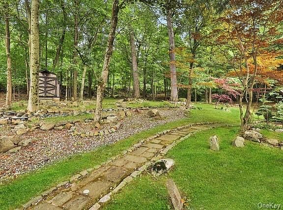 Classic & Quintessential.Welcome to this extravagant 2,612 sqt Mid-century private 4 bedroom Ranch house. Situated on 1+acres of land beautifully landscaped on a picturesque cul-de-sac in the beautiful town of Palisades NY. This oasis is truly one of a kind. This Oriental motif home was built in 1966 by two very prominent physicians. It features hardwood floors, an open layout has doors that lead to a gorgeous indoor patio with a stone fireplace. There are formal living and dining rooms with Fireplace that have cathedral wood ceilings, wood paneled family room featuring a wet bar and open kitchen. Finished basement. Second floor offers 3 bedrooms while the outdoor backyard is an entertainer's dream! This magnificent home must be seen to believe. The original owner of this home has placed it onto the market since it was constructed. From every window, you can see the bucolic Japanese garden surrounding the exterior of this wonderful home. Showing by appointments only.