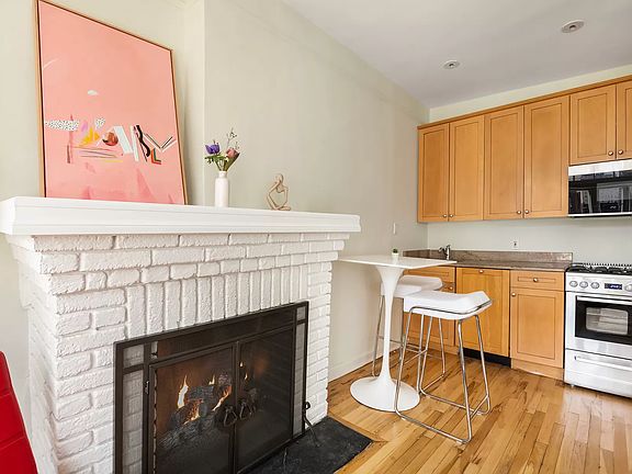 ACCEPTED OFFER: New Prime West Village on Coveted Charles Street! This jewel of an apartment is unlike anything else downtown. The Home: Enchanting, charming, and sunny, this top floor penthouse unit features a south facing stunning wall of windows in both the bedroom and living room providing exceptional sun light and tree top, village views. The unit is updated with refinished floors, wood-burning fireplace, brand stainless steel fridge and stove along with a Bosch dishwasher. The bedroom has a closet and can fit a queen sized bed. Move right in to this beautifully perched, pristinely quiet,(no one above you), mid block tranquil dream West Village walk up with just four quick flights. Bedroom roughly 12x7 and 12x 14 living area w/out kitchen. The cooperative: 5-7 Charles Street is a 19 unit well maintained and attentive townhouse-style co-op that allows sublets, guarantors and pied-a-terres. Sorry no pets. The location: Possibly the best location in New York City, within a 3 block radius you have some of the best Manhattan and the West Village have to offer vis a vis restaurants, jazz clubs, local shops, and an abundance of transportation including the 1,2,3 & ABCDEF trains. This unique & dreamy West Village home is ready for its new happy owner!
