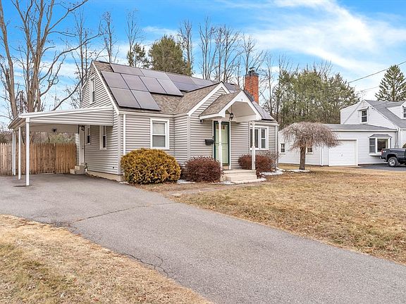 Welcome to this beautiful, well maintained 3 bedroom, 2 bath cape home located on a quiet street in Ellington! Open floor plan from the bright front entrance with a perfectly situated coat closet, cozy living room with fireplace and a wood burning insert. The natural light abounds through the large picture window with nearby built-in shelves. The hardwood floors continue into the dining room with an additional storage closet. The kitchen abounds with cabinets and counterspace. There is a large coffee bar with additional upper and lower cabinets. The primary bedroom with hardwood floors and his and her closets is conveniently located on the first floor. A full dormer upstairs with a second full bathroom and two large bedrooms with newer plank flooring. The partially finished basement is currently being used as a family room/office with a built-in area for an extra fridge that will remain for the buyer's enjoyment.