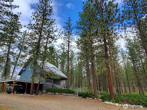 Perfectly private, tucked-away Winthrop home at-the-end of a tiny dead end rd., among beautiful pines w/plenty of natural light, backed up to a nice big greenbelt. Lovingly built 2,078 sf w/efficient high insulation values/floorplan for your mountain lifestyle.3B /2B. Ground floor R24, framed walls R27,ceiling R40.Glowing pellet stove warmth enjoyed by Living, dining & Kitchen. New appliances. Hardwood floors & Wood trim. Large Primary, huge closet. Loft nook. Additional guest bed, or other use. Pleasing second bedroom & second bath on ground floor. Large Utility & Bonus rooms in daylight basement. Tons of storage, well maintained. Outbuildings. Big yard, decks & Carport. Community Pool.