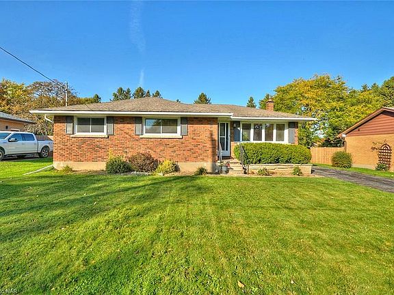 OPEN HOUSE SATURDAY NOV 9 from 1-3pm. Welcome to 5 Cherrywood Avenue, Fonthill! This 3 bedroom, 1.5 bathroom solid brick bungalow sits on an oversized 70' x 180' lot in a desirable area of Fonthill. Conveniently located a short stroll to Downtown Fonthill, Peace Park, Restaurants, Shopping, Schools, Churches, Marlene Stewart Park, the Shorthills Provincial Park and so much more. The home is filled with plenty of natural light and offers an eat-in kitchen with access to the backyard, a large living room and three bedrooms on the main floor. The kitchen has a newer gas stove and overlooks the vast back yard that is fenced, except one small width from the house to the property line on the West side of the home. As a bonus, the original hardwood floors on the main floor are in excellent condition! The recreational room in the basement was recently renovated and has vinyl flooring, a half bathroom and new windows making it the perfect overflow space for the growing family. There is also a workshop / laundry area in the basement providing plenty of storage space. The roof was done in 2013, new eaves and fascia in 2015. This home has been lovingly maintained and is ready to become your next family home! The huge backyard is very private, with a patio area, a shed for outdoor storage, and as a bonus, there is an established vegetable garden for you to enjoy! Don't miss this rare opportunity to get into a great home—schedule your viewing today!