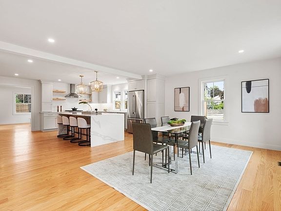 Newly completed & thoughtfully gut-renovated farmhouse. Expansive living room showcases v-groove ceiling detail, oak wrapped beams & door casings, custom gas fireplace & surround. Open concept dining room leads to a well appointed chef's kitchen w/ large island, quartz countertops & high end Thermador appliances. Floating oak shelves above range focus your eyes towards the family room off the kitchen, half bath & a sliding glass door to a large & fully fenced in yard. Professionally landscaped , the yard includes covered porch & private patio space. 2nd floor boasts dedicated laundry room, three sizable bedrooms & spacious family bath. Expansive, sun drenched primary suite addition includes high ceilings, dual walk-in closets& spa bath w/double vanities. Finished lower level includes direct access to 2 car garage, mudroom & large recreation space. New electrical, plumbing, Hardy siding, windows & heating/cooling. Close to schools, Belmont Center, public transport, Rt 2, Camb & Boston.