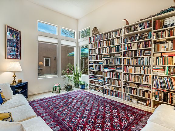 Sometimes you walk into a house, and there is an intangible quality that speaks so much more than mere words or adjectives ever could. This home has "it." Serenity, luminosity, and ease are just a few words that come to mind when you walk through this home. Certainly, it is immaculate and the pride of ownership that exudes from this one-owner home will impress. In the age of storage and organization, the many built-ins throughout the home will astonish you. The flexibility of the flowing floor plan will delight you with so many possibilities. Need an office, a space to accommodate the occasional client, a studio space, a library, a guest bedroom, or two? This home allows for all types of inhabiting. The interior courtyard is lush and shaded with amazing Aspen trees and pops of color from gorgeous rose bushes. The water catchment system is in place with a working drip system to make this lush greenery carefree. The master bedroom is to the rear and off the street for privacy and quiet and has a private portal, large master bath, and big walk-in with amazing closet system. The roof was re-coated two years ago, the boiler was replaced in 2017, the water heater in 2018, and two ductless air conditioning units were added for summer comfort. Window treatments abound, vigas in the family room off the kitchen, granite tiled counters, custom security screen door, new garage door opener, and the list goes on and on. Come see this wonderful home before it's too late!