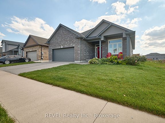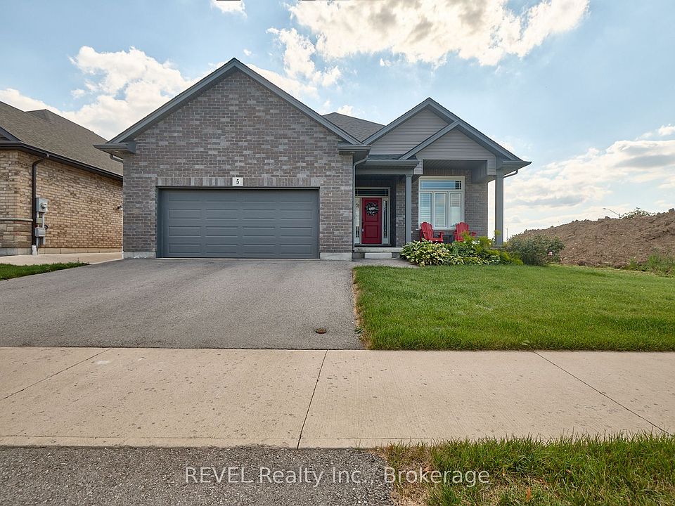 As delightful as its name, 5 Cinnamon Street is sure to be the bungalow of your dreams! Built by reputable Marken Homes in 2018 and located in beautiful Rolling Meadows, this property is definitely going to impress. Situated on a desirable lot with a 51-foot frontage and equipped with five bedrooms and three full washrooms, there is little left to be desired here. From the moment you step in, take note of the layout that flows seamlessly, making you feel right at home. To the right of the entrance is where you will find the home's first bedroom and full bath - the ideal positioning for guests or working from home. The main living space is open concept and filled with natural light. Blending the living, dining and kitchen into one central area, this is truly the heart of the home and the space where many cherished family memories will be made. Featuring a stunning vaulted ceiling, gas fireplace and gorgeous selections, this space has wow-factor written all over it! Sliding glass doors off the dining room lead to a fully fenced backyard where a deck and adjacent patio create the perfect little escape for sunny brunches or quiet evenings under the stars. The oversized windows throughout the home keep the feeling bright and airy throughout. Tucked around the corner from the main living area is the laundry room that provides direct access to the garage, making everyday chores feel easy. Two additional bedrooms, including the primary suite round off the main level of this home. Complete with a large walk-in closet and a spa-like ensuite, the primary retreat is sure to please the most discerning of buyers. Downstairs, the finished basement adds ample additional finished living space with two bedrooms, a substantial recreation room that currently doubles as a home gym and chill zone, along with a cute little hobby corner or reading nook. Additionally, there is unfinished storage space - the perfect balance for families on the go. Come see what all the fuss is about!