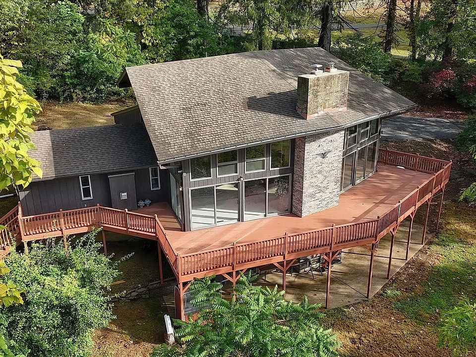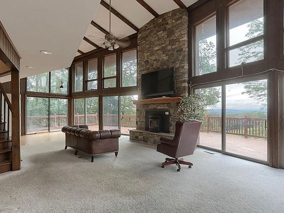 Take in the breathtaking views from your wrap-around deck, overlooking the neighboring golf course and the town below, all while enjoying the privacy of a secluded 2+ acre lot. Inside, the main level offers soaring ceilings, abundant natural light, and a beautiful stone fireplace that serves as the perfect centerpiece.