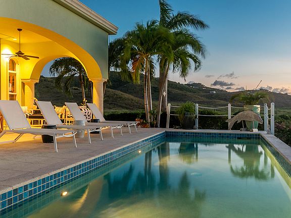 Experience Caribbean living in this luxurious 6-bedroom, 6-bath villa located within the upscale gated community of Carden Beach on St. Croix's East End. With breathtaking views of Buck Island, this residence blends tropical elegance with modern comfort.The main home showcases five spacious bedrooms, while a private guest suite offers the ultimate retreat. Inside, a gourmet chef's kitchen, formal dining room, and expansive gallery create the perfect backdrop for grand entertaining or relaxed island living. The 2-car garage, central A/C, UV water filtration, and impact-resistant windows all add comfort and security to the home. The monthly fees provides services exclusive to Carden Beach residents including a sparkling pool, generator, fitness center, tennis courts and 24/7 security. Welcome to Carden Beach Villa, where luxury meets laid-back island living in the most captivating way. Set atop a gentle hill in the prestigious, gated Carden Beach community on St. Croix's sought-after East End, this magnificent 6-bedroom, 6-bathroom private villa offers 4,500+ square feet of thoughtfully designed indoor living space and a world of Caribbean elegance and comfort.
