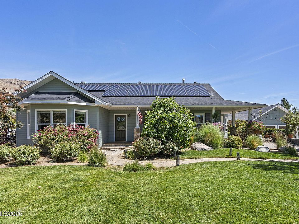 Back on the Market - No Fault of the Home! Walking distance to Pleasant Valley Elementary Welcome to your Pleasant Valley retreat! This family-friendly gem is available again after a previous escrow fell through due to buyer circumstances. Set on a private one-acre corner lot with sweeping views, this home blends rustic charm with modern updates. Inside you'll find hardwood floors, crown molding, fresh paint, and a cozy river rock fireplace. The chef's kitchen features Thermador appliances, slate tile floors, built-in refrigerator, pull-out spice cupboards, dual disposals, and a large pantry. With 4 bedrooms, 3 baths, and a loft hideaway, there's room for everyone. Updates include a new furnace (2023), tankless water heater (2025), seller-owned solar, EV-charger readiness, and newer Bosch dishwasher. The mudroom—with pet spa sink and custom kennels—makes family life easier, while the great room with library wall and gas fireplace invites gatherings. Outside, enjoy an outdoor fireplace, in-ground trampoline, two-story playhouse, and RV parking with electric hookup. The property also offers a 245 sq. ft. workshop plus a 1,179 sq. ft. "art barn" with radiant heat, full kitchen, loft bedroom, and history as a former community market—now perfect as in-law quarters or guest space. A rare find in one of the valley's most sought-after family neighborhoods. Don't miss it!
