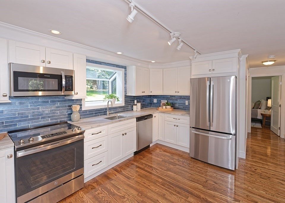 Completely renovated & spectacular turn-key cape is ready for its new owner! Meticulous detail & craftsmanship, by a high-end local builder, have gone into this beautiful home. Extensive updates include a new designer kitchen w/custom cabinetry, granite countertops, stainless steel appliances & a large island with additional work area, cabinetry & seating. The re-designed new full bathrooms have state-of-the-art tile work & fixtures. Relax in your cozy fireplace living room or enjoy the comfort of the family room. Step out the family room slider to your new spacious deck overlooking the nice large yard. Gorgeous re-finished hardwood flooring flows throughout first & second floors, adding to the bright & open feel. A bonus first floor bedroom offers additional versatility on main level. The renovated lower level is the perfect space for an additional family room, office, rec room or bedroom. Nestled on a cul-de-sac in a great neighborhood, close to town/schools/shops. Don't miss out!
