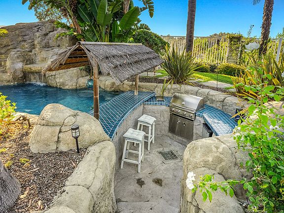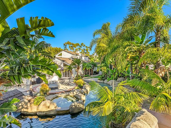 Gorgeous cape cod style home in Beacon Cove. Amazing four-bedroom, three-bath home with a resort-style backyard and endless views of South County. The home features a corner cul-de-sac location with a gated entry leading to the amazing resort-style backyard that is FULLY furnished and ready for entertaining. A cute dutch door greets you and opens up to a huge open floor plan with high ceilings and great natural lighting. The home has been FRESHLY painted on the interior and exterior and new carpet has bee installed in the primary bedroom. The kitchen is remodeled with quartz counters and stainless steel appliances and is open to the family's great room. A kitchen island and breakfast nook are perfect for casual dining but you also have a formal dining and living room option. The main level includes three bedrooms, a Jr. primary bedroom that is en-suite, and two secondary bedrooms that share a remodeled full bathroom. Laundry vsn be both inside or in the garage and there is direct entry from the two-car garage. The upper level is a private master suite with a private bar, built-ins, a two-way fireplace, dual vanities, and a separate tub and shower. The backyard is an entertainers dream and includes a rock pool with a water slide, grotto, spa, swim up bar and a sunken BBQ area. Two concrete deck areas with a custom outdoor fireplace unit! Close to shopping, dining, award-winning schools, a dog park, Laguna Niguel Lake, hiking trails, and a short stroll to world-class beaches!