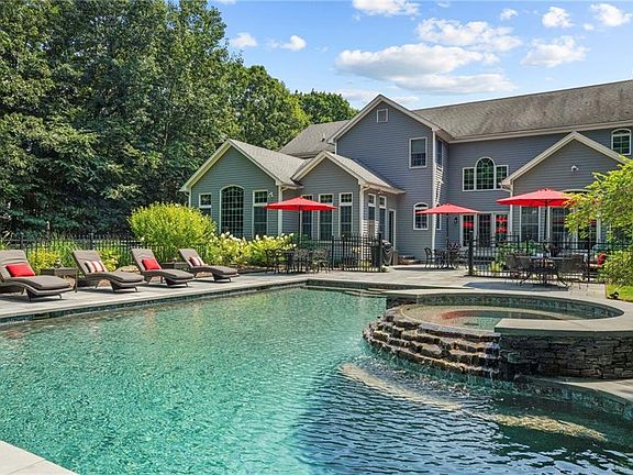 Set at the end of a private cul de sac in desirable Westwood Farms, this magnificent Levesque built home is everything you have been waiting for and more. As you enter the two-story foyer, warm cherry floors greet your arrival; your eye is drawn through the French Doors across the azure tones of the saltwater pebble tec pool, flanked by oversized bluestone slabs. Distinct custom molding and archways frame the formal dining room as well as the living room featuring the ideal fireplace to enjoy your favorite Port. The heart of the home is a beautifully combined kitchen and breakfast room flowing into a cathedral ceiling great room with stone fireplace and separate entrance to rear patio. This combines for an inviting day-to-day space with built-ins, professional-grade appliances, and walk in pantry. 3 Car Garage. Grill outdoors and enjoy this resort style pool with hot tub, cascading waterfall, and complete cabana for all of your guests’ needs. Lastly, a separate office with private entrance, and sunroom overlooking the breathtaking grounds round out the first floor. The primary bedroom features vaulted ceilings, walk-in closets, and a remodeled private bath. Additional bedrooms(4) offer wonderful natural light and ample closet space- one providing full ensuite; additional full bath and laundry room complete the floor. The lower level features additional living space with a billiard room flanked by a custom bar fit for a pub, full bath, and a craft area for the kids.