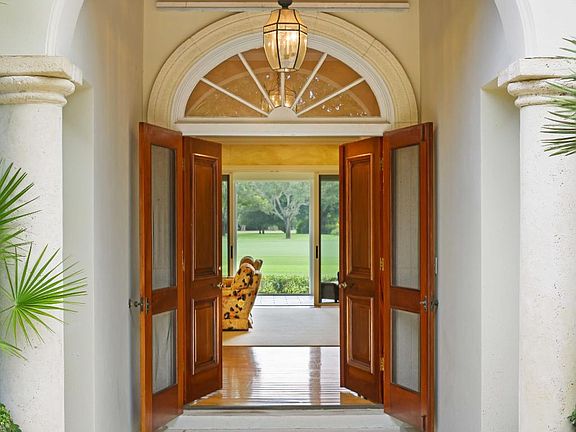 Elegantly situated in the prestigious Village of Golf, 5 Country Road East A is a gracious single-family residence offering timeless style and serene golf course views. Built in 1996 and thoughtfully maintained, the home encompasses 4,131 total square feet with 3,198 square feet under air on a beautifully landscaped 0.82-acre lot. The classic, traditional design welcomes you with a formal entry leading into a grand living room featuring soaring ceilings and walls of glass that frame the tranquil fairway setting. Ideal for entertaining, the living space flows seamlessly to an enclosed lanai, perfect for year-round enjoyment. Inside, rich hardwood floors, custom built-ins, and a warm family room off the kitchen create an inviting atmosphere. The chef's kitchen is appointed with a large kitchen island, granite countertops, premium appliances, and an oversized pantry. The spacious primary suite offers high ceilings, abundant closets, and a luxurious bath with dual vanities, soaking tub, and separate shower. An attached office provides the perfect private retreat. Two large guest suites, each with walk-in closets and ensuite baths, complete the split-bedroom plan.Notable features include a brand-new roof, impact glass windows (2014), a full-house generator, newer HVAC systems, and an attached two-car garage. Combining timeless elegance with modern comforts, this exceptional home presents a rare opportunity to enjoy Village living at its finest.
