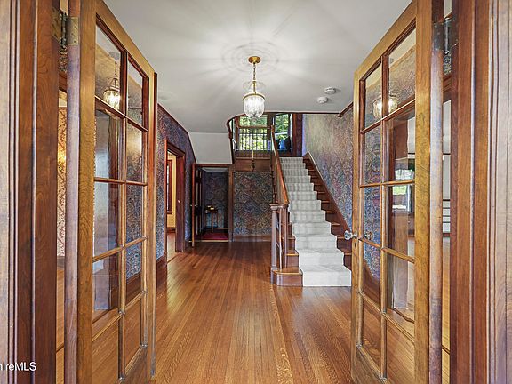 Start the tour by being welcomed in its elegant double door entry foyer noticing the handcrafted applique', a sweeping two story staircase gracing the entrance with the grandeour of Berkshire life in an earlier time. Generous sized rooms with 10' ceilings, period lighting, elegantly trimmed in the warm glow of mahogany custom millwork are comfortable and inviting for everyday joy. The living spaces are grounded with gleaming refinished golden quartersawn oak floors, the centerpiece is a handsomely finished fireplace being flanked with floor to ceiling glass French doors. Escape to the pillared terrace for outdoor enjoyment and privacy in the carefree perennial gardens with varieties of hydrangea, evergreens, hostas and beech trees to that notable property each season. The light-filled dining room encompassing elegance and grace showcases a pillared floor to ceiling mirror reflecting the tree top views while relishing dinnertime together at the end of a busy day.