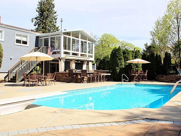 This Beautiful four bedroom two and a half bath home is a true entertainers dream. A long Eight car driveway leads you to your summer playground. The back yard boasts an 18x42 heated salt water pool, large six-person jacuzzi, outdoor 60in flat screen tv, outdoor ping pong table, and plenty of space to relax on the brick paver patio. If cooking is your forte you will be in heaven cooking in your outdoor kitchen with a Bull 48in grill, two side burners, refrigerator, and storage. Of course, there is electric in the space for your blender to prepare frozen cocktails. When the sun gets too hot you can lower your automatic retractable awning. If you love cooking with fresh ingredients the home has two custom made protected victory gardens to grow your vegetables. Entering the lower level of the home from the backyard you will enjoy a wonderful den with built-ins, room for a pool table, bar and ? bath. When the temperature drops a bit, you can always relax in your heated three seasons room.This home is also equipped with a whole home natural gas generator.Don?t miss this opportunity to own a true stay-cation home.
