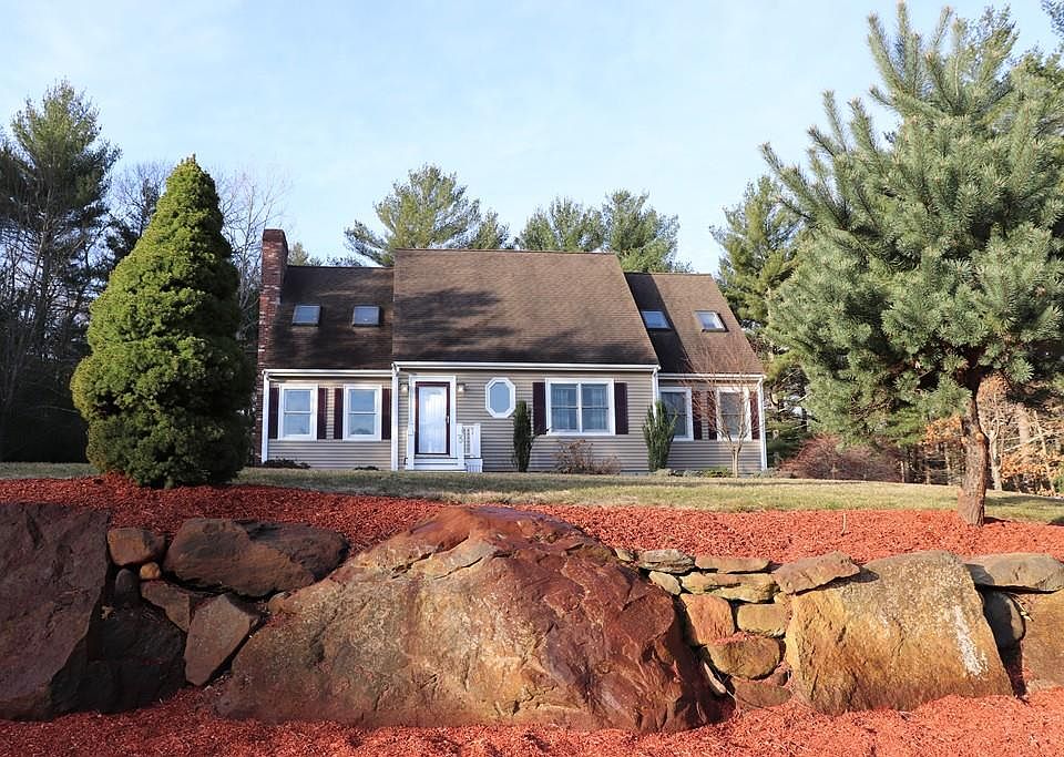 Beautiful Cape set on a private wooded lot at the end of a cul de sac. The home has an incredible open floor plan encompassing the kitchen with granite counters & SS appliances, dining area with 2 sliders leading to an approx.50 ft deck, & living area with pellet stove, cathedral ceiling & skylights all cohesively brought together with beautiful hardwood flooring. You can entertain till your heart's content. The main level also boasts 2 newly carpeted bedrooms, a full bath & laundry room. Second floor consists of a grand master bedroom with skylights & new bamboo flooring, a massive walk in closet, & spa like bath. The 2nd large bedroom with oversized closet has plenty of natural light. There's 2 CA units , wired surround system and fresh paint throughout. The lower level has a family room with pellet stove & half bath. Two stall garage has extra room for storage & wired for generator. The great yard has above ground pool, 2 sheds, 12 zone irrigation (well water), & perennials