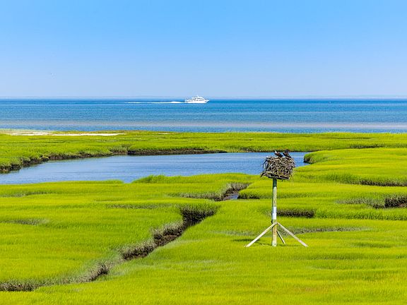 Waterfront Beach House! Welcome to Grays Beach, one of the most breathtaking views on Cape Cod with a boardwalk that spans out over the salt marsh to Cape Cod Bay! The ever changing tides reveal a lush sand bar that reaches out to the tip of Chapin's Beach in Dennis. Just steps to the beach, perfect for exploring the coastline, looking for sea creatures, enjoying a day at the beach or watching one of the best sunsets on Cape Cod! 5 Davidson Lane, known as Marsh Haven was designed with the view in mind, allowing the natural surroundings to be captured at every turn. You'll be mesmerized by the view through the telescope of the Osprey's- Olive & Oscar! An open living room, dining and kitchen sit on the second floor with cathedral ceilings, wood burning fireplace and access to the expansive deck over looking Cape Cod Bay. The first floor hosts 2 bedrooms, full bath, home office and family room with fireplace. There's even a large shed, full house generator and solar power. After a day at the beach, enjoy the outdoor shower or head out to one of the many nature trails for a hike! A true beach treasure!