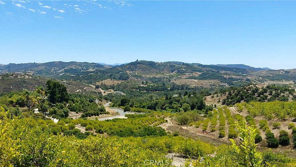 Don't miss this extraordinary opportunity to own a breathtaking 18.2 acres of pristine land in the heart of De Luz. This picturesque parcel currently planted with lemons and professionally managed and organic certified offers the perfect canvas for your future estate home, complete with panoramic views that will take your breath away. Whether you envision a sprawling mansion, a charming retreat, or a family compound, this land is ready for your dreams to take root. Enjoy sweeping vistas from every corner of the property. Imagine waking up to stunning sunrises and winding down to mesmerizing sunsets, all while being enveloped in the natural beauty of the rolling hills. With paved roads on three sides, access to your future estate is as easy as it gets. This location is ideal for those who crave a peaceful retreat without sacrificing accessibility. Enjoy the convenience of seamless travel to nearby amenities while relishing the peace and quiet of rural living. A crucial asset for any property, there is already a 2-inch water meter in place, ensuring an efficient and reliable water supply for your future home. The land features varied topography with rolling hills, offering a unique character that allows for diverse opportunities including continued operation of the existing lemon grove. Other possibilities include a vineyard, avocado grove, or estate homesite – the choices are endless. This is a rare opportunity to secure a piece of land that offers not just space, but a lifestyle. Whether you’re looking to build your dream home, an investment property, or simply a getaway, this 18.2-acre gem in De Luz is waiting for you.