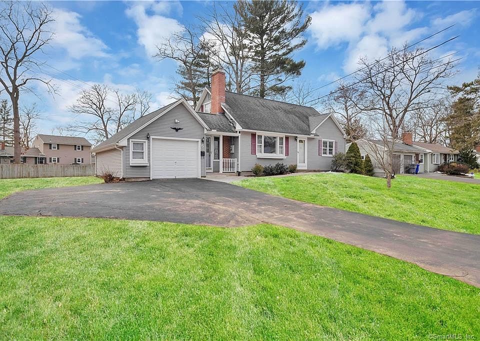 Welcoming, 1456 sq. ft. Cape located in quiet Enfield neighborhood. Situated on 0.62 level acres, this lovely home includes hardwood floors, newer windows, a heated Breezeway, fresh paint and 2 working wood fireplaces. The home can be accessed from either the front-facing, porch-equipped Breezeway or through the Living room front entrance. The nicely-finished, knotty-pine Breezeway includes wall-to-wall carpeting, an independent heat source, as well as front, rear and garage access. The Breezeway leads to a nicely-tiled, freshly-painted Kitchen with black-and-stainless appliances, a double sink, and tasteful cabinetry. The adjacent, hardwood-floor, freshly-painted, south-facing Dining room includes a large Bay window for optimum natural light, and the hardwood-floor, freshly-painted Living room contains a large picture window and inviting wood-burning fireplace. The remainder of the main level includes 2 hardwood Bedrooms as well as a tiled-floor common bath. The second level includes 2 more hardwood-floor Bedrooms. The lower level includes its own wood-burning fireplace and a large portion of finished wall space allowing tremendous potential for a large recreational area. The grounds include an off-Breezeway patio, and a level, partially-fenced-in backyard perfect for any social gathering. 1-Car garage.