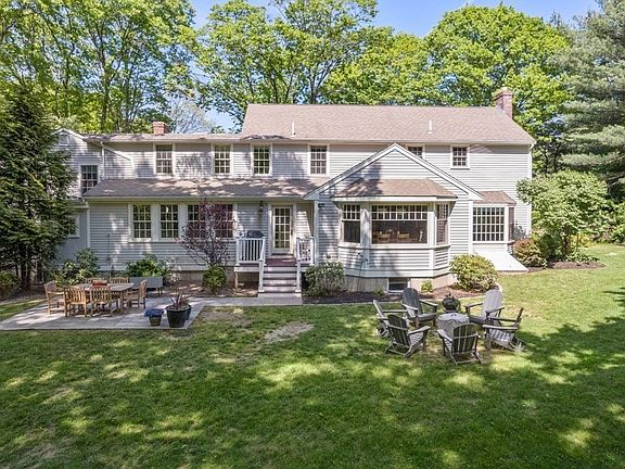 Located on 2 picturesque acres on favorite cul-de-sac, this MOVE-IN READY, 5 BD home has been UPDATED, EXPANDED & IMPROVED & offers what every buyer is looking for! Gorgeous custom kitchen w/large island & every desired amenity, overlooks incredible backyard w/mature trees, stonewalls & patio great for indoor & outdoor entertaining! Family & living rooms both w/wood burning fireplaces, dining rm & home office w/built-in cabinets, incredible back hall w/wall of windows, mudroom & 1/2 bath complete 1st fl; 2nd staircase leads to large primary bedrm w/luxury bathrm & multiple closets, 4 more bedrms, one ensuite, 3rd full bath & laundry rm round out 2nd floor. Nicely done lower level includes media room, rec room, gym & plenty of storage. Other highlights include: new septic system, central a/c, newer windows, updated systems, hardwood floors, gas cooking…the list goes on! Perfectly renovated home, coveted neighborhood, top public schools, town beach, hiking trails & convenient location!