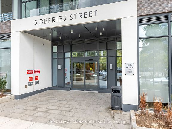 Welcome to urban elegance at Unit 2911, 5 Defries Street, nestled in the heart of downtown Toronto within the celebrated River & Fifth Community! This bright 1-bed, 1-bath condo offers a seamless open-concept layout-with 9 ft ceilings and floor-to-ceiling windows that fill the space with natural light and frames captivating city views! Step into a modern chef's kitchen featuring stone countertops, stainless steel appliances, and under-cabinet lighting. Wide-plank laminate flooring flows throughout the living and dining areas, complemented by a private balcony, perfect for enjoying morning coffee or evening relaxation! The generous bedroom includes a built-in closet, and a sleek 4-piece bathroom, in-suite laundry and ample storage finish off the interiors. Residents benefit from resort-style amenities: 24-hour concierge, fully equipped fitness & yoga studio, outdoor pool, rooftop terrace with BBQ area, kids' playroom, media lounge and meeting rooms. Located in the vibrant Regent Park / Corktown corridor, you're just steps from the Dundas streetcar, the DVP, the Distillery District, lakeside trails, cafés& restaurants-a true city-centre lifestyle!Ideal for first-time buyers, investors or downsizers seeking low-maintenance living in an iconic downtown tower. Don't miss your chance to own this exceptional unit!